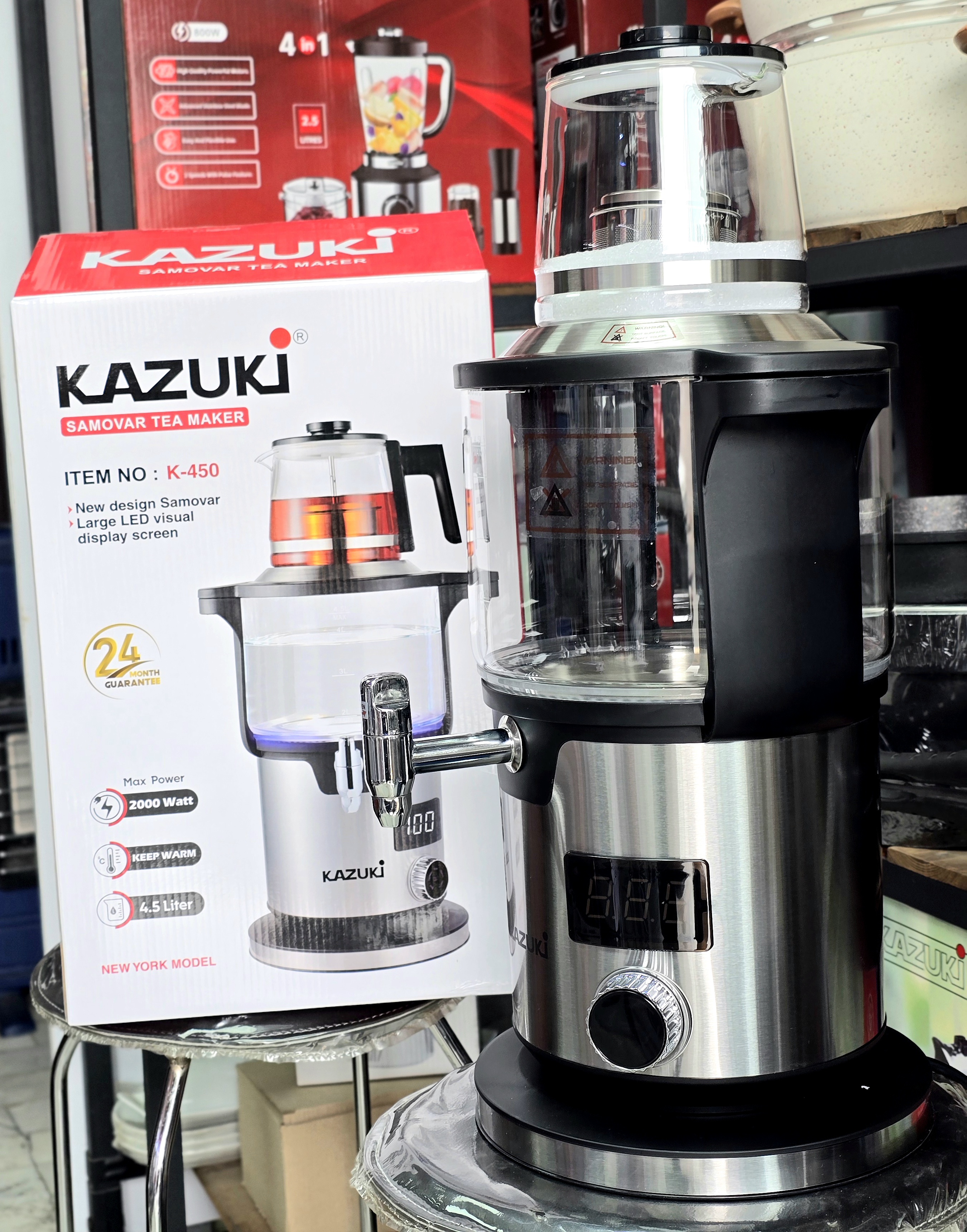 2000 وات مخزن آب 4.5 لیتری ، کتری 1.1 لیتر دارای بسکت دم چای دارای گرم نگهدارنده خودکار ، محافظت در برابر افزایش دما صفحه نمایشگر دما چراع داخل کتری